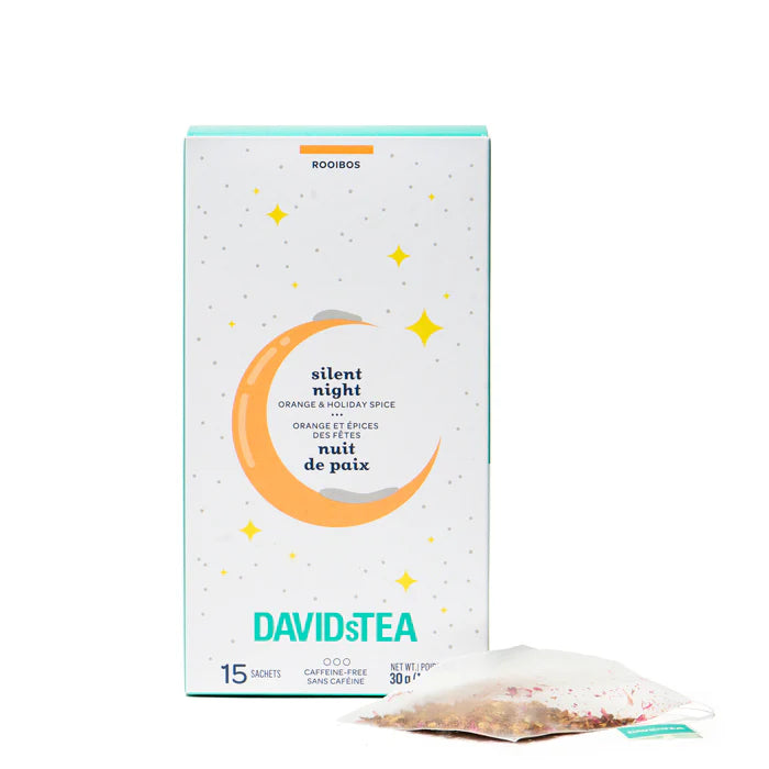 一切歸於平靜,一切變得光明,一切都沉浸在天堂般的睡夢之中。這款舒緩的「寧靜之夜」茶飲以橙、肉桂和丁香的輕柔包裹著您,而纈草根則以其放鬆的特性,幫助您安然入睡。熄滅燈光,讓寧靜的夜晚降臨。